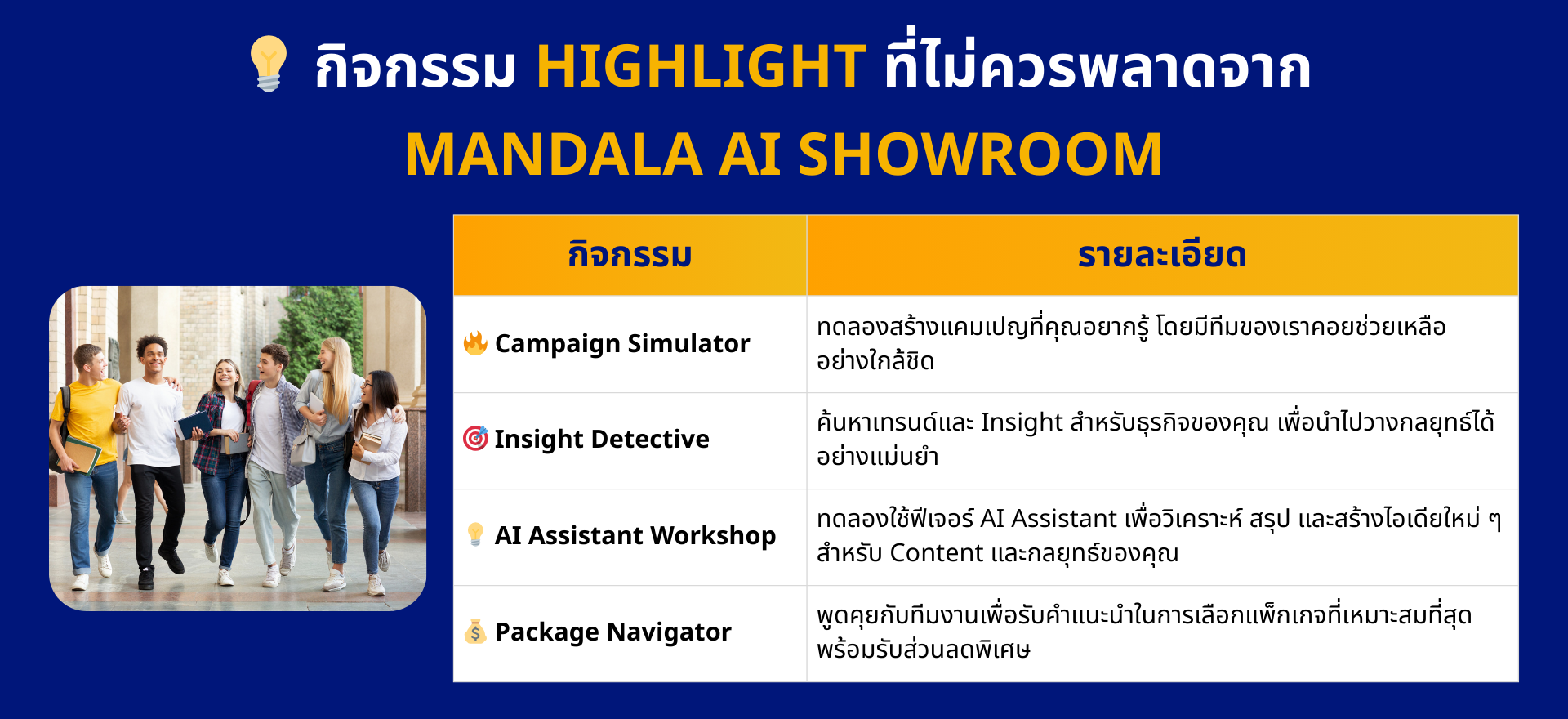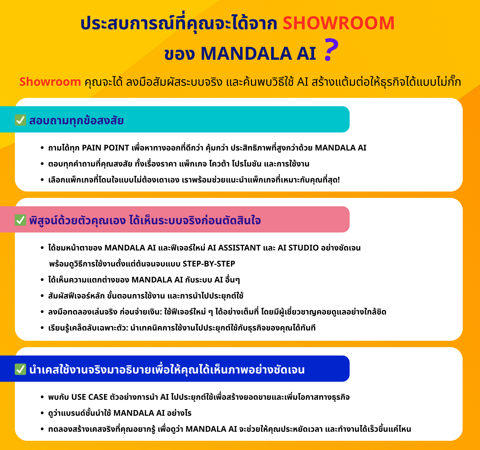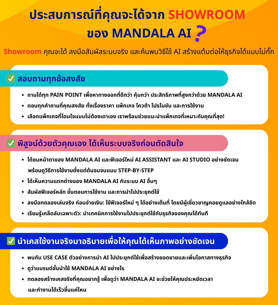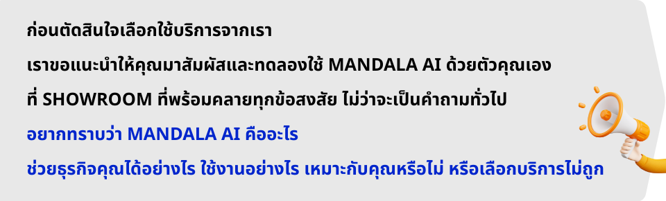 👉 คลิก! นัดทีมงานของเราได้เลย ระยะเวลาของกิจกรรมที่ Show Room : ประมาณ 1 ชั่วโมงเท่านั้นเอง! (ขึ้นอยู่กับจำนวนคำถาม) 👉 คลิก! นัดทีมงานของเราได้เลย Your browser does not support the video tag. 👉 คลิก! นัดทีมงานของเราได้เลย 👉 คลิก! นัดทีมงานของเราได้เลย 👉 คลิก! นัดทีมงานของเราได้เลย ทักแชทหาเราเลย @mandalaanalytics Inbox: MandalaAI 0-2115-8100 | 08-3229-9987 www.mandalasystem.com [email protected]